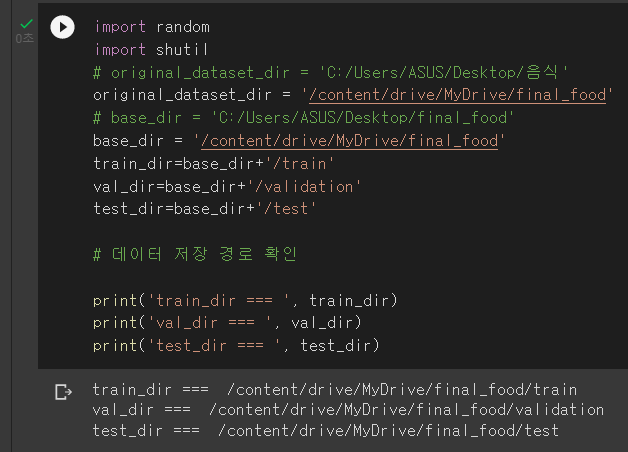 colab에 Mount하고 드라이브에 저 final_food 폴더를 통째로 저장.. 업로드만 한 24시간 걸렸다.