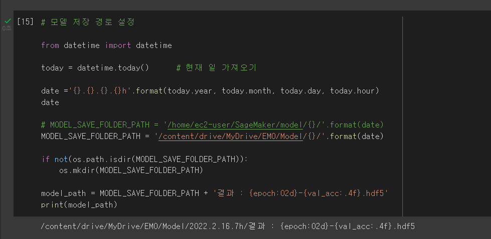 구글 드라이브에 저장되게 일단 해놨는데, colab은 런타임연결시간이 있어 아마 날아가기 전에 미리 저장을 해줘야 할 것이다.