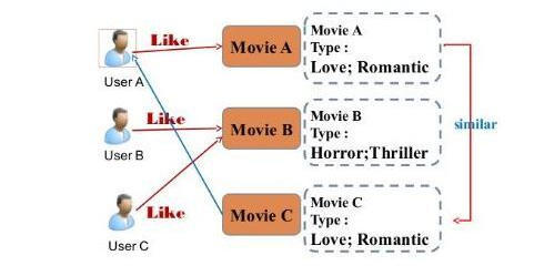 예를 들어 A가 Movie A에 높은 평점을 줬는데 그게 액션이고, 영화감독 이름이 '이수진'이면 '이수진'감독의 다른 액션영화를 추천해주는 것.. 요즘은 잘 안 쓴다.