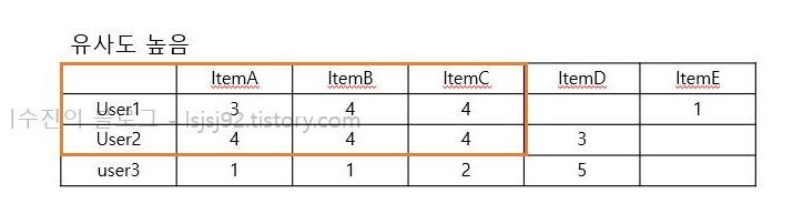 - 사용자 기반: 비슷한 고객들이 ~한 item을 소비했다.