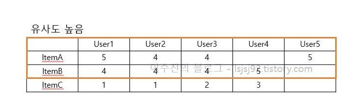 - 아이템 기반 협업 필터링(Item based Collaborative filtering)