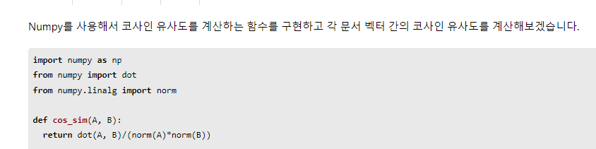 -> 코사인 유사도로 구한다. 두 벡터가 비슷할 수록 1값이 나오고 반대방향일수록 -1?이 나온다!