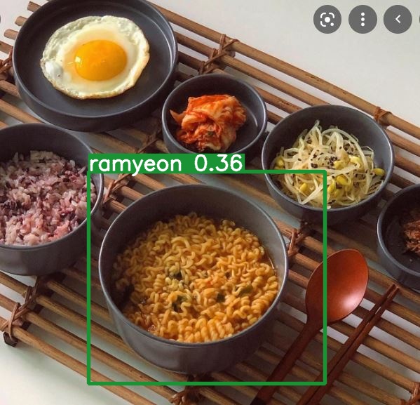 그리고 동일한 epoch 50에서 이렇게 여러 음식 사진이 있는 경우, 잘 잡아내지 못하는데 crop을 해서 주면 잡아낸다.(정확도는 좀 다르긴 하다..)
