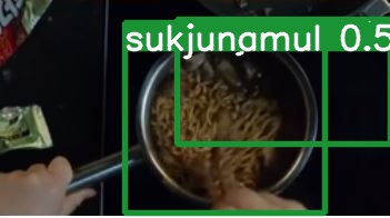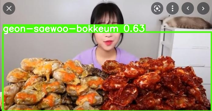 미역국 색을 파란색으로 했더니 만두국으로 잡긴 했다. -> data augmentation이 이상한 필요없는 것까지(Gray Scale 등등) True로 설정되어 있어서 train.py에서 augment=False로 수정하기