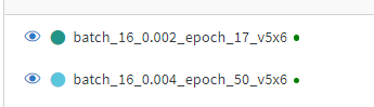 현재 진행상황(epochs 17은 완료, epochs 50은 20 진행중)