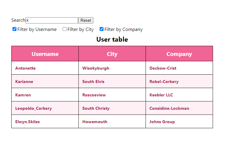 일단 filter 종류는 3가지가 있고(username, city, company)