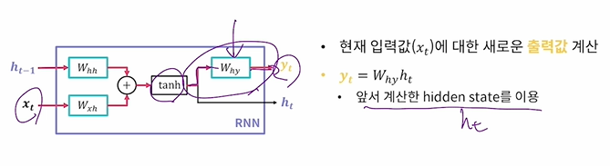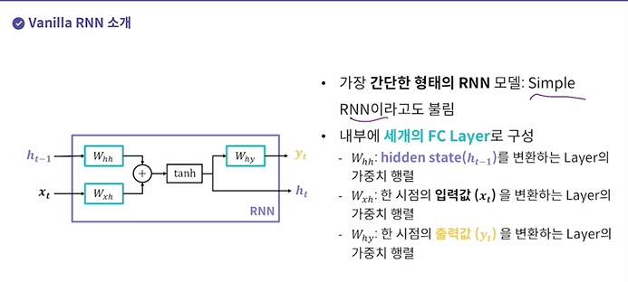 - Hidden state와 출력값 계산을 위한 FC Layer를 모든 시점의 입력값이 재사용
