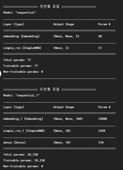 model.add(layers.SimpleRNN(3)) # hidden state의 벡터 길이 = 3으로 설정 필수 파라미터.