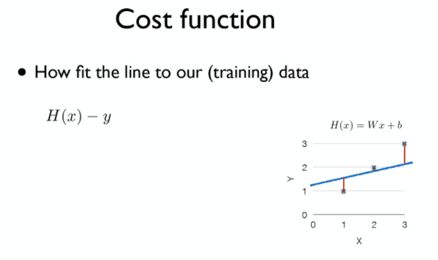 - 여기서 제곱한 이유 1. H(x)-y가 음수가 되지 않도록, 2. 너무 멀리 있는 데이터에 대해서 패널티 주기(일부 데이터에만 정확히 맞춰지는 것을 방지)