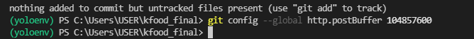100GB * 1024 * 1024 한 값을 git config에 수정해줌.