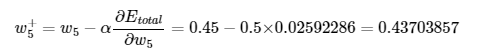 처음 w5는 0.45였다. 이제 다음 w5는 0.437이 된다. 이것이 바로 가중치 업데이트이다.