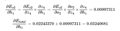 또다시 Chain Rule을 적용하여 각 Eo1의 h1에 대한 미분을 z에 대한 미분, z의 h1에 대한 미분으로 분해하여 계산한다.