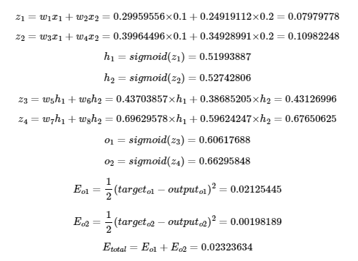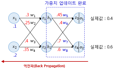 이렇게 backpropagation을 완료했으면 그 업데이트된 변수들(가중치 w1,w2,w3,w4,w5,w6,w7,w8)들을 넣어서 다시