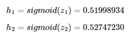 구하고 나면 각각의 은닉층 뉴런에서 sigmoid를 거친 후 h1,h2가 나오게 된다.
