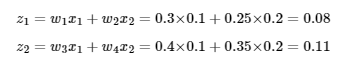 z1, z2를 먼저 구하자(첫 번째 은닉층의 sigmoid의 입력값)
