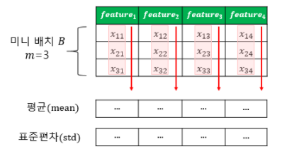 - 내부 공변량 변화 : 신경망 층 사이에서 발생하는 입력데이터의 분포 변화