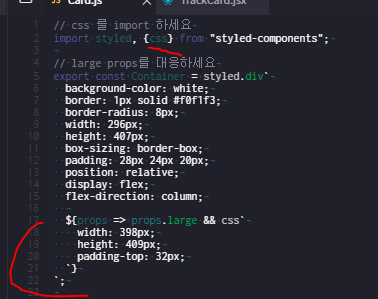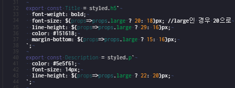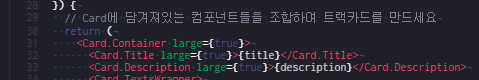 Styled Component의 장점: 미리 만들어둔 UI를 card.description이런 식으로 다시 조합해서 바로 쓸 수 있다.