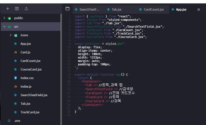 21.10.22 React ( Ch3 트랙카드, 탭, 검색창 만들기) + Map함수 설명 잠깐