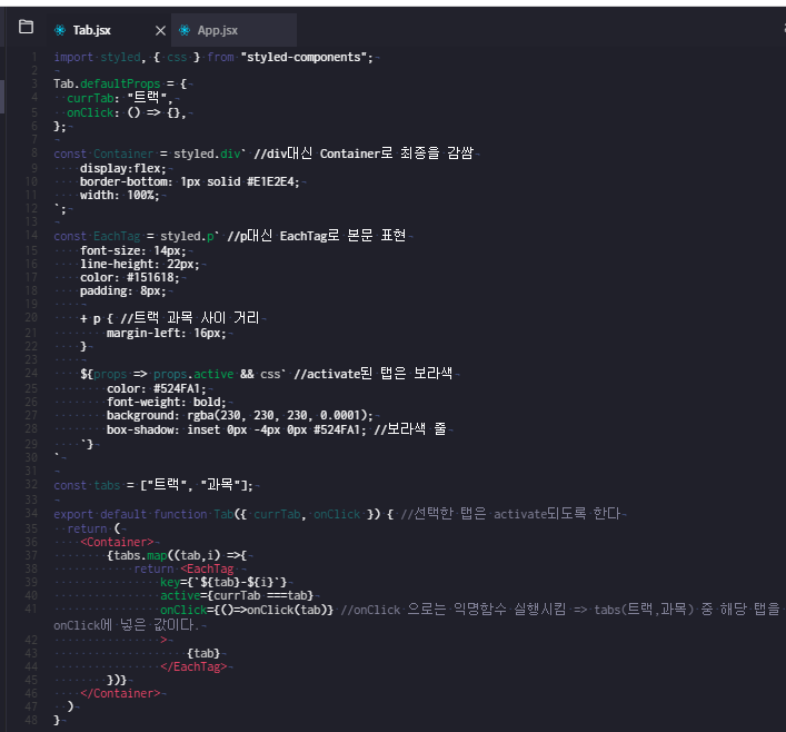 실습 5 트랙/과목 탭 만들기 & Map함수 잠깐