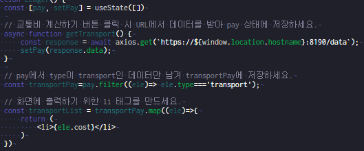 pay.filter()를 해도 pay가 배열이었으므로 transportPay도 배열,