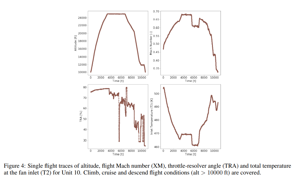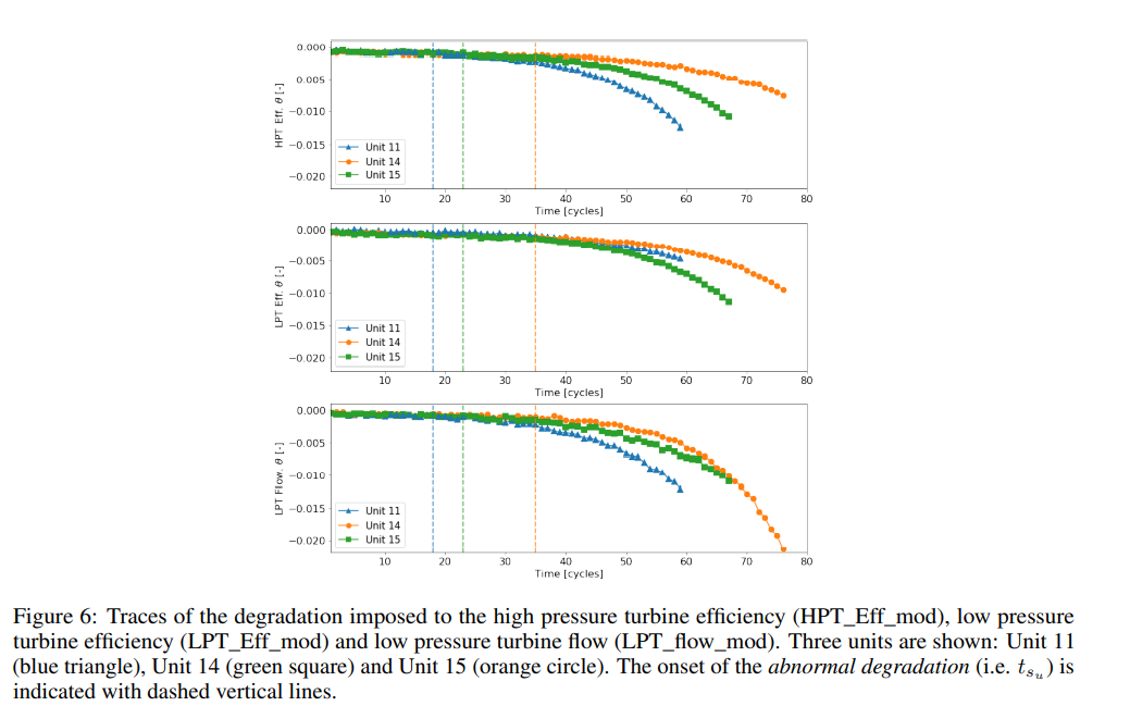 그러나 이 이전 연구에서 제공된 실패 대비 궤적은 순항 중 가능한 6개의 작동 스냅샷으로 제한된다. 또한 비정상적인 열화의 시작은 과거의 수술 프로파일에 의존하지 않는다. 따라서, 결과적인 열화 궤적은 실제 시스템에 존재하는 복잡성의 중요한 요소가 부족하다.