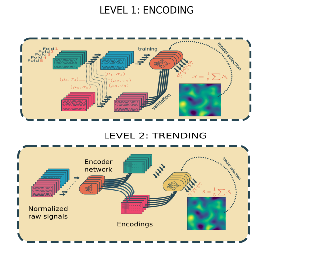 - Level 2 (trending) has the goal the learn from the trend of the signal using the encodings generated by the level 1.