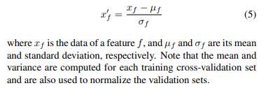 평균과 분산은 각 훈련 교차 검증(cross-validation) 세트에 대해 계산되며 validation 세트를 정규화하는 데에도 사용된다.
