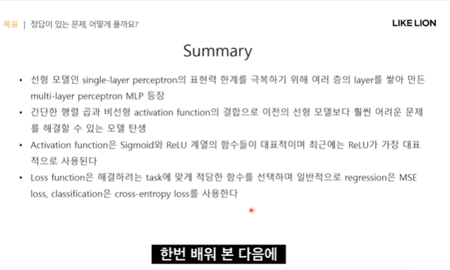 - single layer perceptron 이 multi layer perceptron(MLP)가 되기 위해 어떤 과정이 필요했냐면