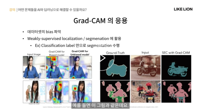 GradCAM의 예시 - 데이터셋의 bias 파악