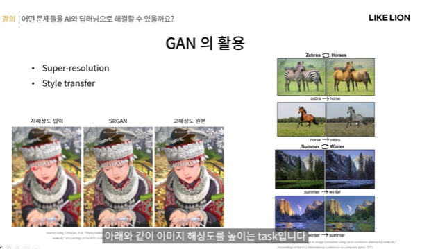 - style transfer : 말을 얼룩말로, 여름을 겨울로, 사과를 오렌지로 ..