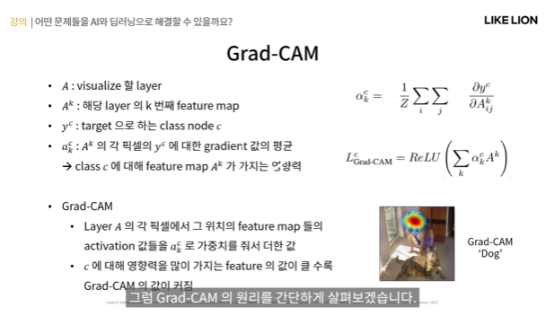 - gradient를 이용해 인공신경망을 시각적으로 설명하는 기법, 주로 CNN에서 사용