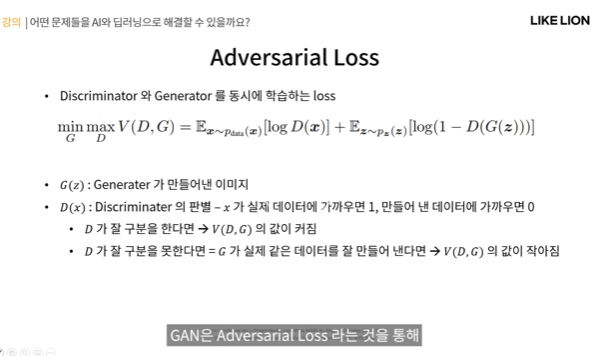 - 즉 G와 D가 서로 상반된 loss를 가지고 있음 .. adverserial