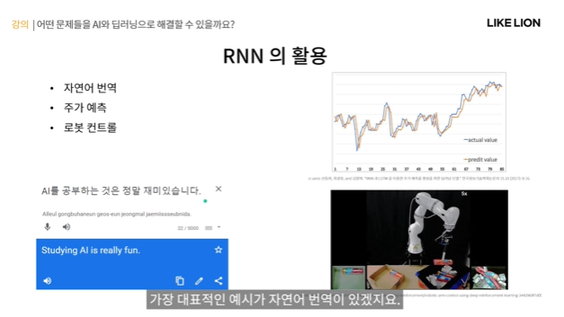 - 자연어 번역(띄어쓰기 기준) 주가예측, 로봇 컨트롤 등등...