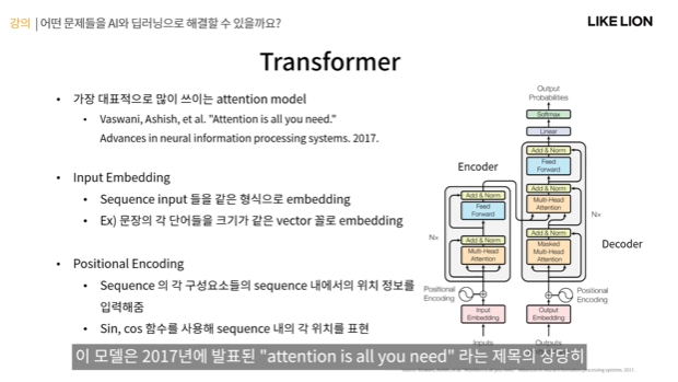 - sequence-sequence task는 대부분 transformer를 활용할 수 있게 된다. (자연어번역, 문장생성)