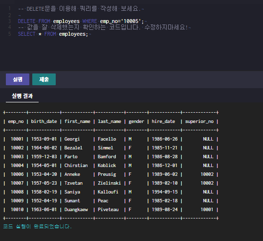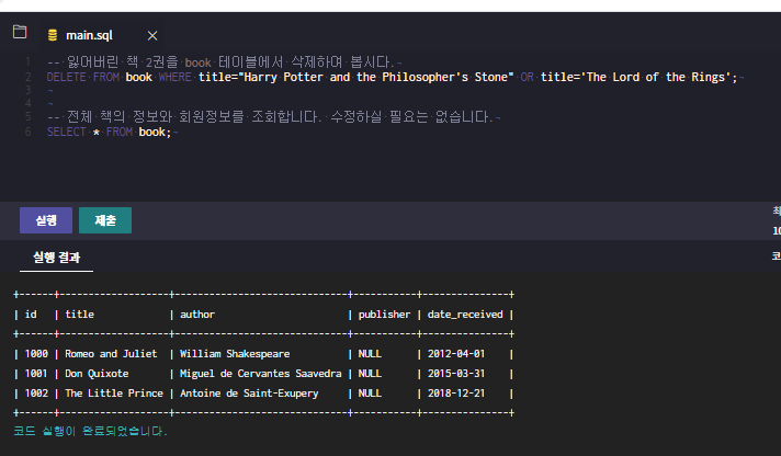 # 실습 9 데이터 삭제하기 DELETE FROM