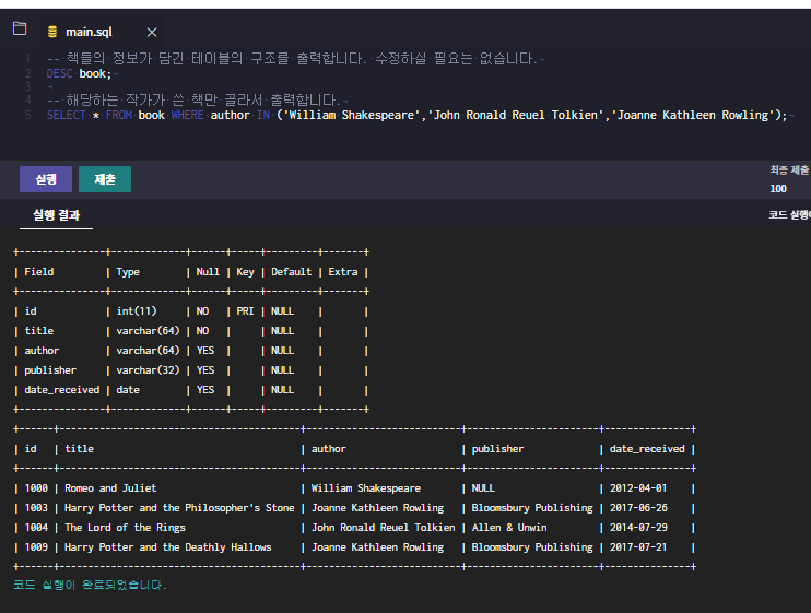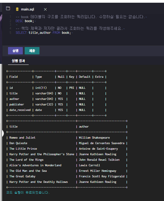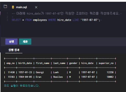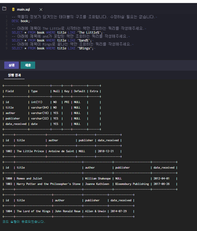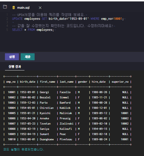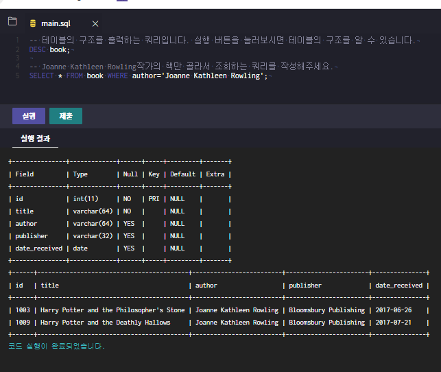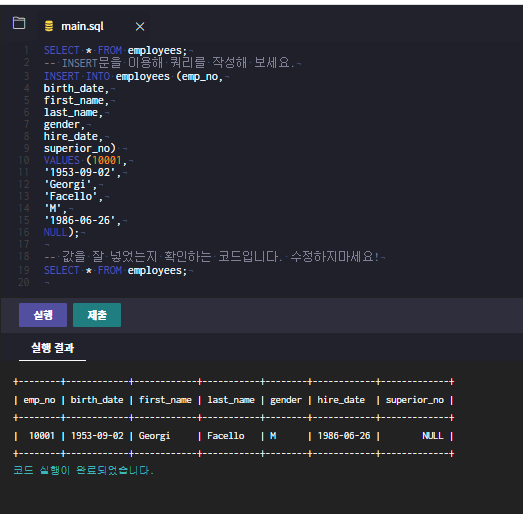 # 실습 6 새로운 데이터 삽입 INSERT INTO