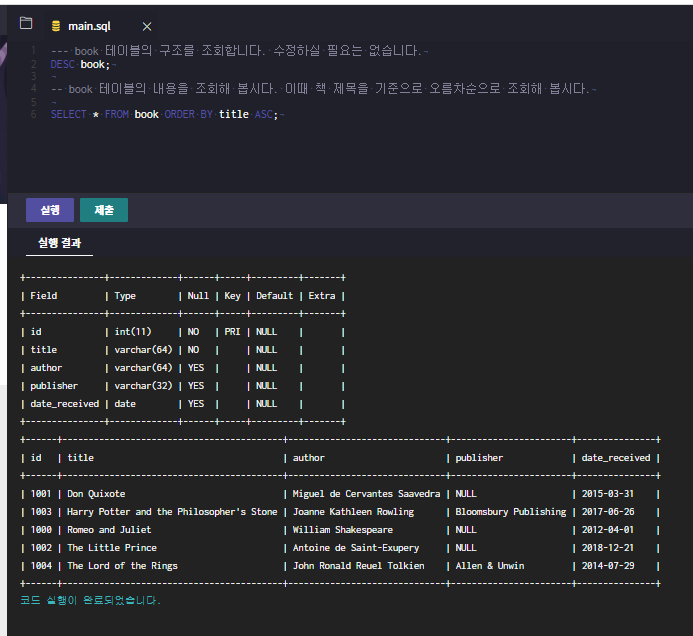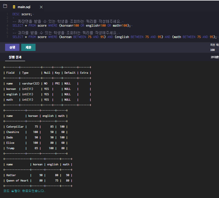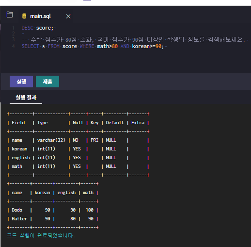 # 실습 4 ORDER BY : 정렬 (오름차순,asc내림차순des)