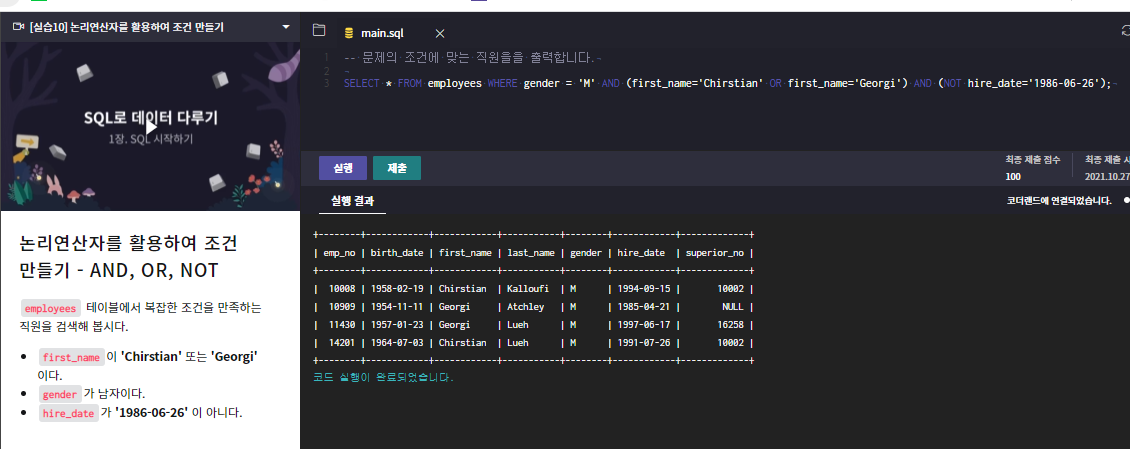 21.10.31 (6주차 복습 1) SQL 시작하기, DML, 함수