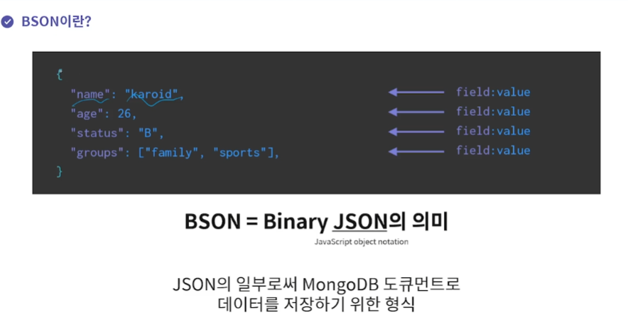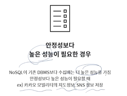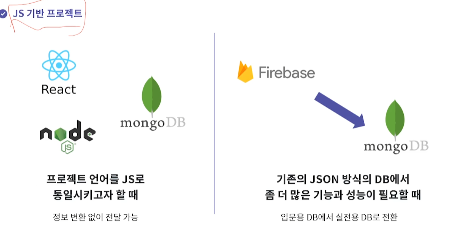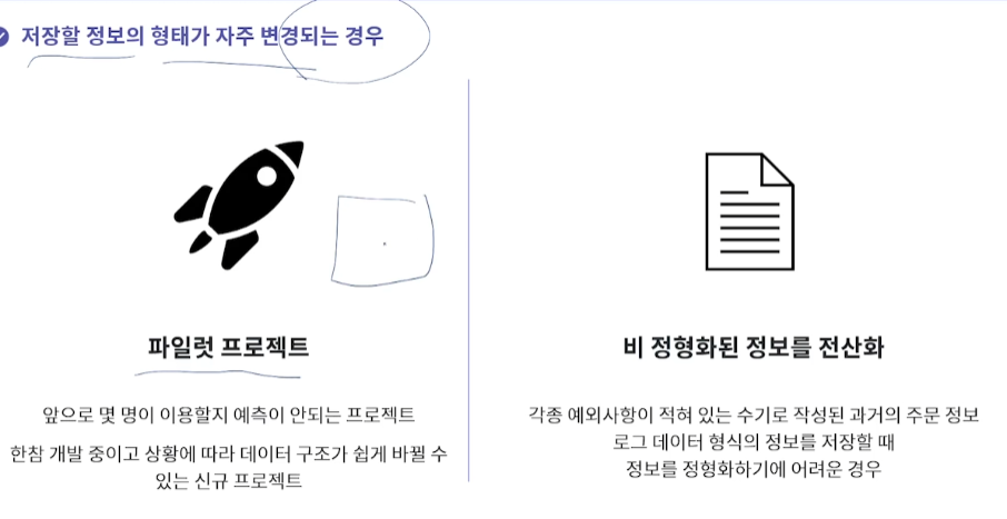 - JS기반 프로젝트, 저장할 정보의 형태가 자주 변경되는 경우, 높은 성능이 필요한 경우에 Good