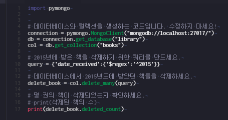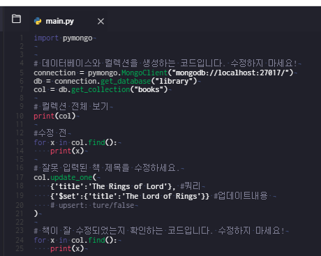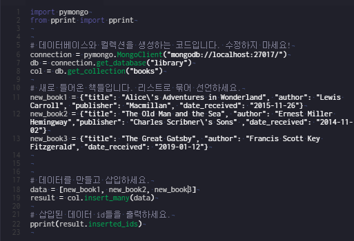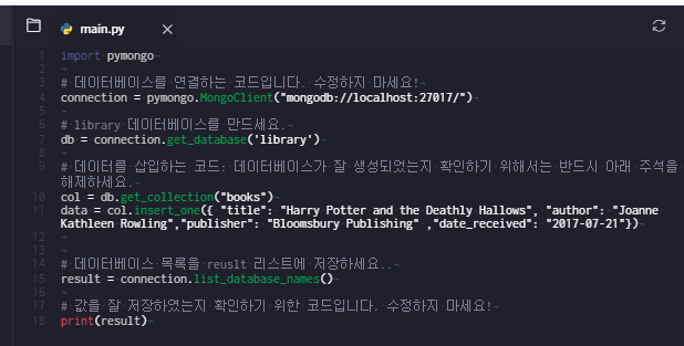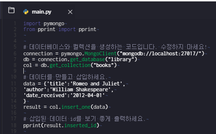 실습 1 몽고DB python파일인 pymongo로 데이터베이스 만들기