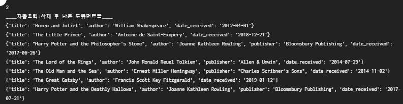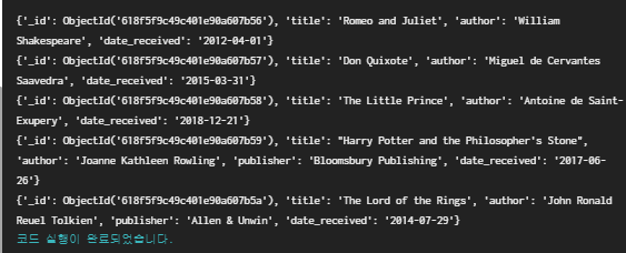 _id 필드를 제외한 books 컬렉션의 모든 도큐먼트를 조회하였다.