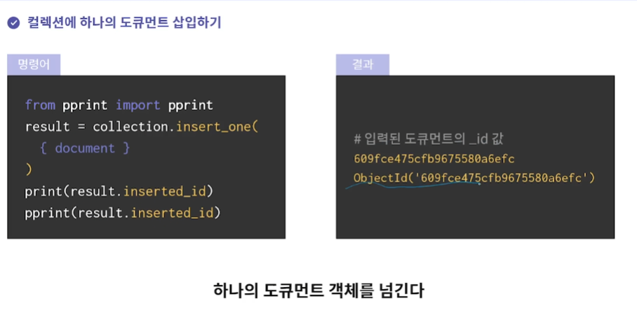 컬렉션명.insert_one({키:값, 키:값 ...}) #도큐먼트 데이터 삽입