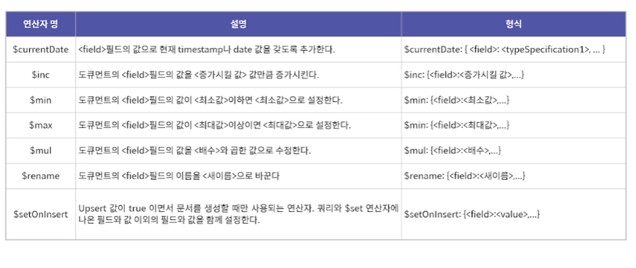 $set, $unset 말고 다른 이런 update 연산자들이 있다.