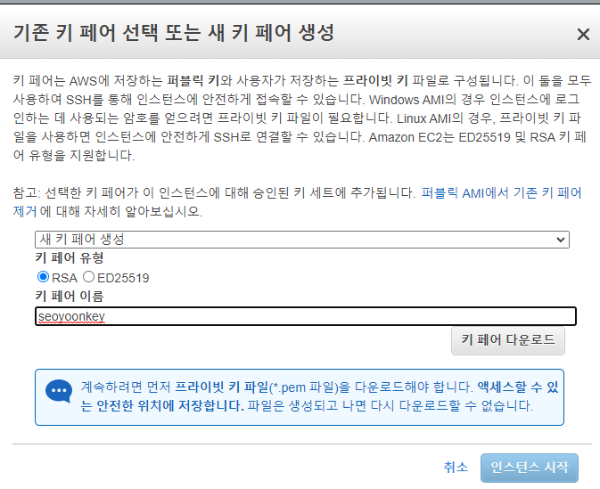 남의 컴퓨터를 빌려야함. 그래서 키 페어라고 아무나 접속하면 안되니까 보안 인증을 함