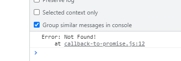 현재 promise.then()으로 성공적인 경우만 써줬기 때문에 Uncaught라고 뜬다.