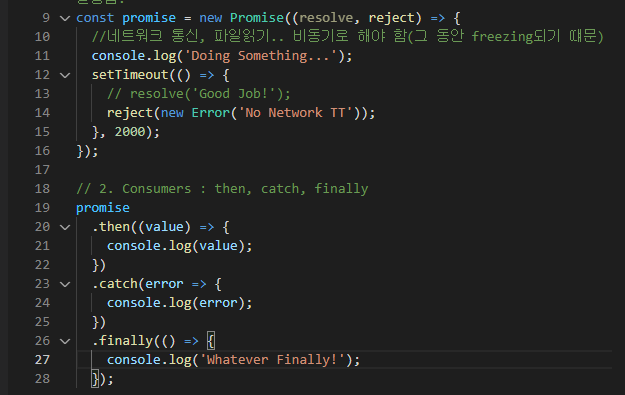 이제 Consumer입장에서 then, catch, finally를 해본다.