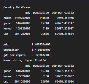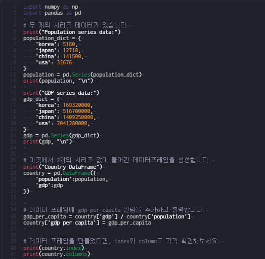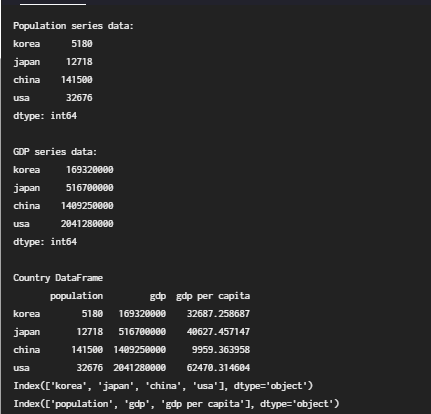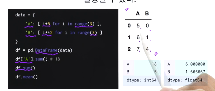 Series : numpy array가 보강된 형태 Data와 index를 가지고 있다. 이때 인덱스는 숫자가 아니어도 된다.
