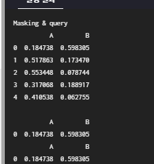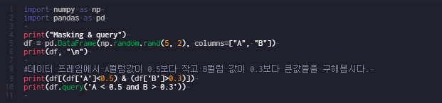 df[(df['A']<0.5) & (df['B']>0.3)] # 여까지 하면 true false인 series가 나옴.