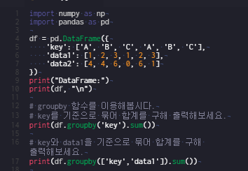 # Q5. sum 함수의 axis 매개변수로 각 열의 합을 구해 출력해보세요.