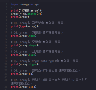 list는 [1,'apple']이 가능하지만 np.array는 단일타입으로 구성된다.